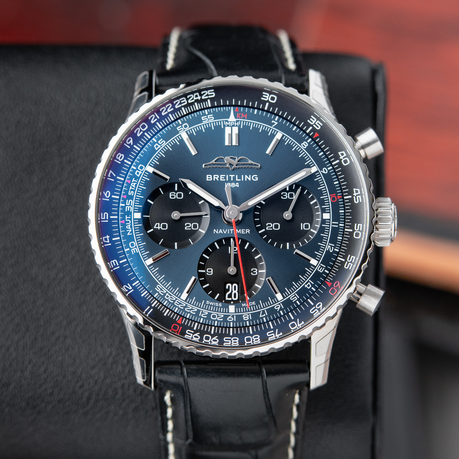 [ºê¶óÀÌÆ²¸µ] ³»ºñŸÀÌ¸Ó 1 B01 Å©·Î³ë±×·¡ÇÁ ¿ÀÅä¸Åƽ 7750 ŸÀÔ 43mm ³²¼º¿ë °¡Á×¹êµå ºí·ç ´ÙÀ̾ó bre0713 - Breitling Navitimer B01 Chronograph 43mm Mens Neuwertig B0121211C1P3 Blue Dial