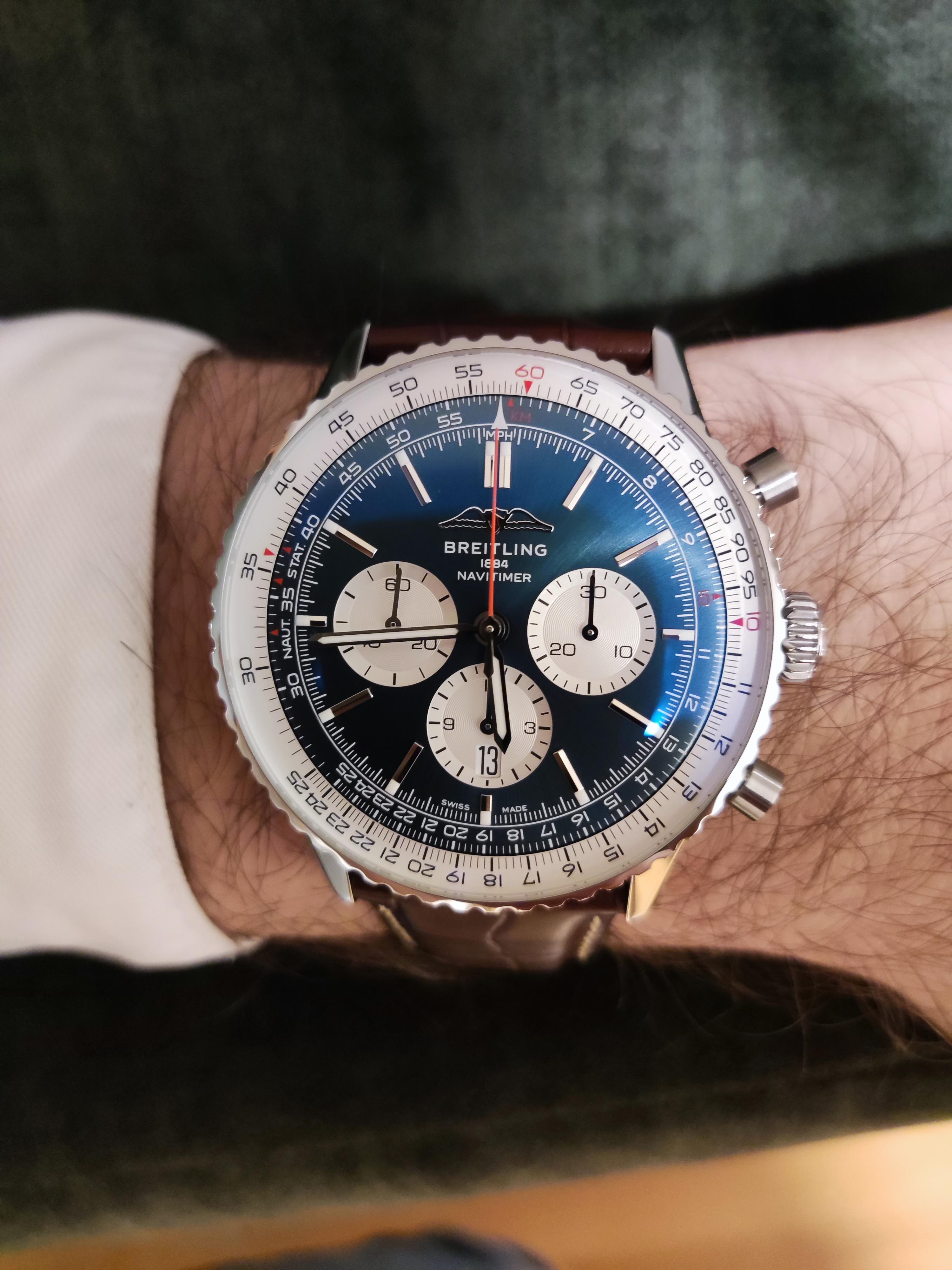 Á¦Ç°¸í [ºê¶óÀÌÆ²¸µ] ³»ºñŸÀÌ¸Ó 1 B01 Å©·Î³ë±×·¡ÇÁ ¿ÀÅä¸Åƽ 7750 ŸÀÔ 43mm ³²¼º¿ë °¡Á×¹êµå ºí·ç ´ÙÀ̾ó bre0714 - Breitling Navitimer B01 Chronograph 43mm Mens Neuwertig AB0138211B1P1 Blue Dial