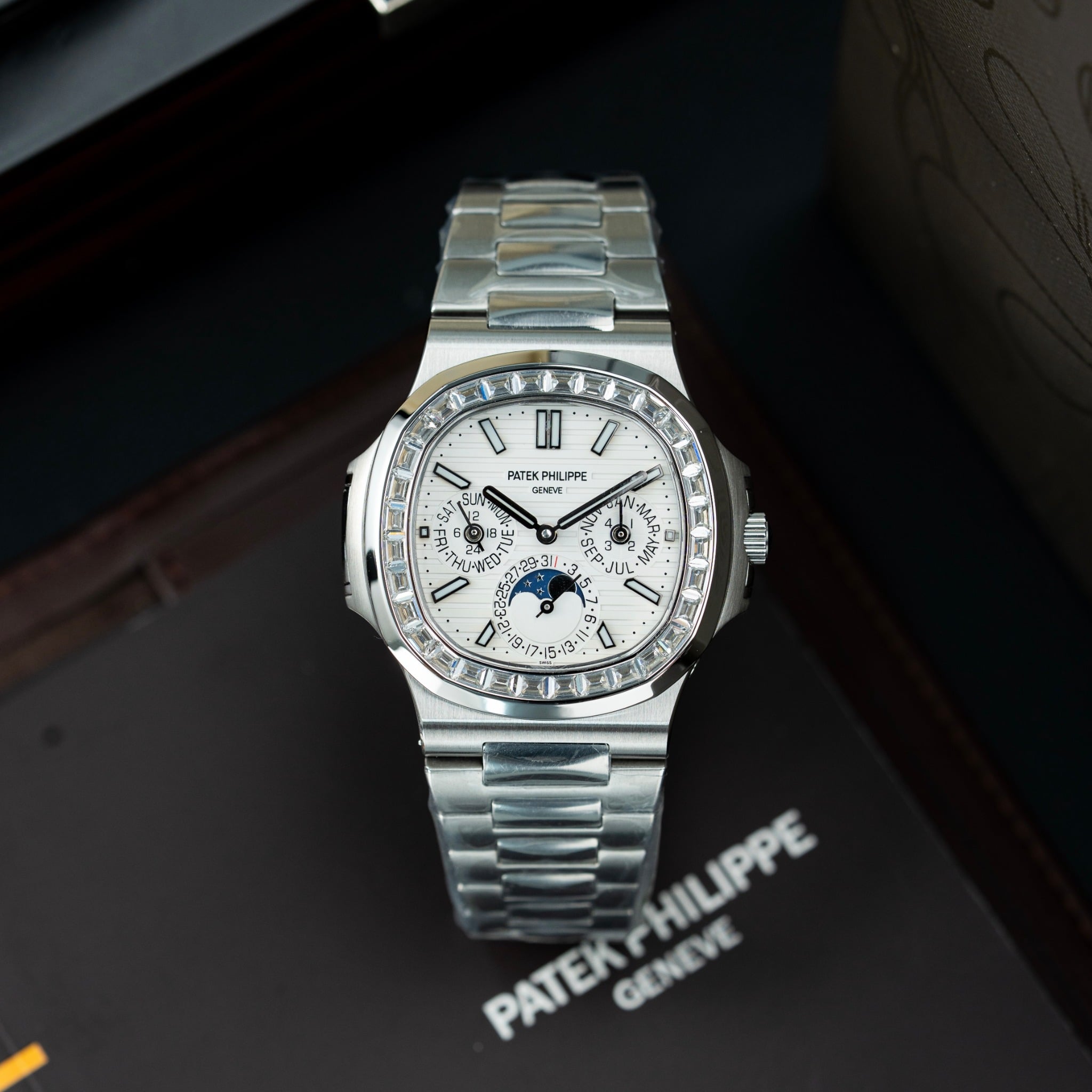 [ÆÄÅØÇʸ³] ³ëÆ¿·¯½º 5740 ÆÛÆäÃò¾ó ͏°´õ ³²¼º¿ë 40mm ¿ÀÅä¸Åƽ ¸ÞÅ»ÁÙ º¸¼®/´ÙÀÌ¾Æ È­ÀÌÆ®´ÙÀ̾ó pat0655- Patek Philippe Nautilus Perpetual Calendar 5740 Automatic Movement Mens 40mm Diamond Bezel White Dial
