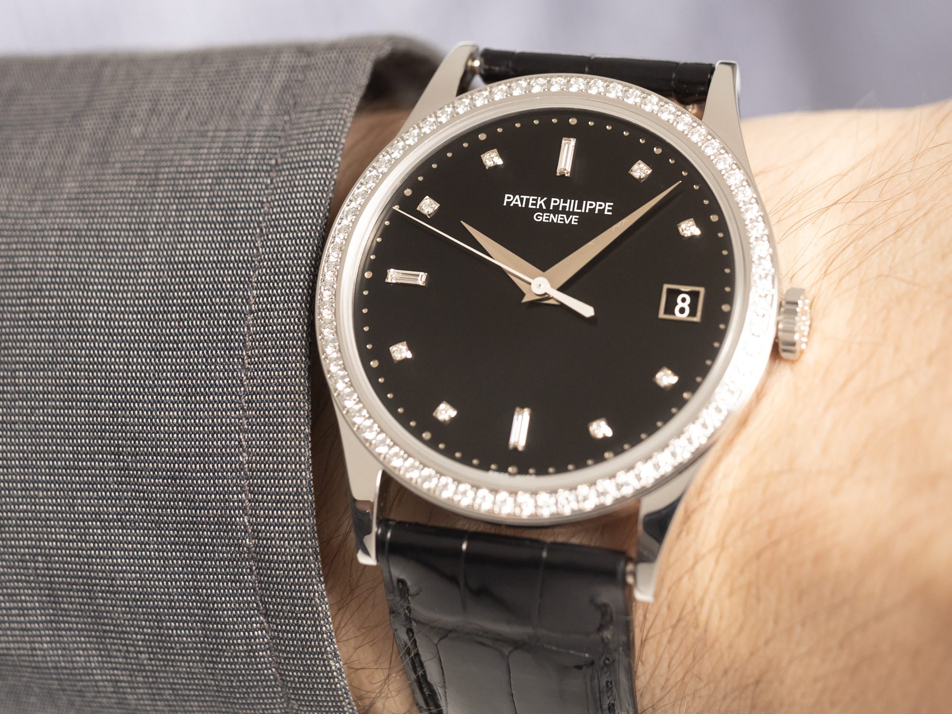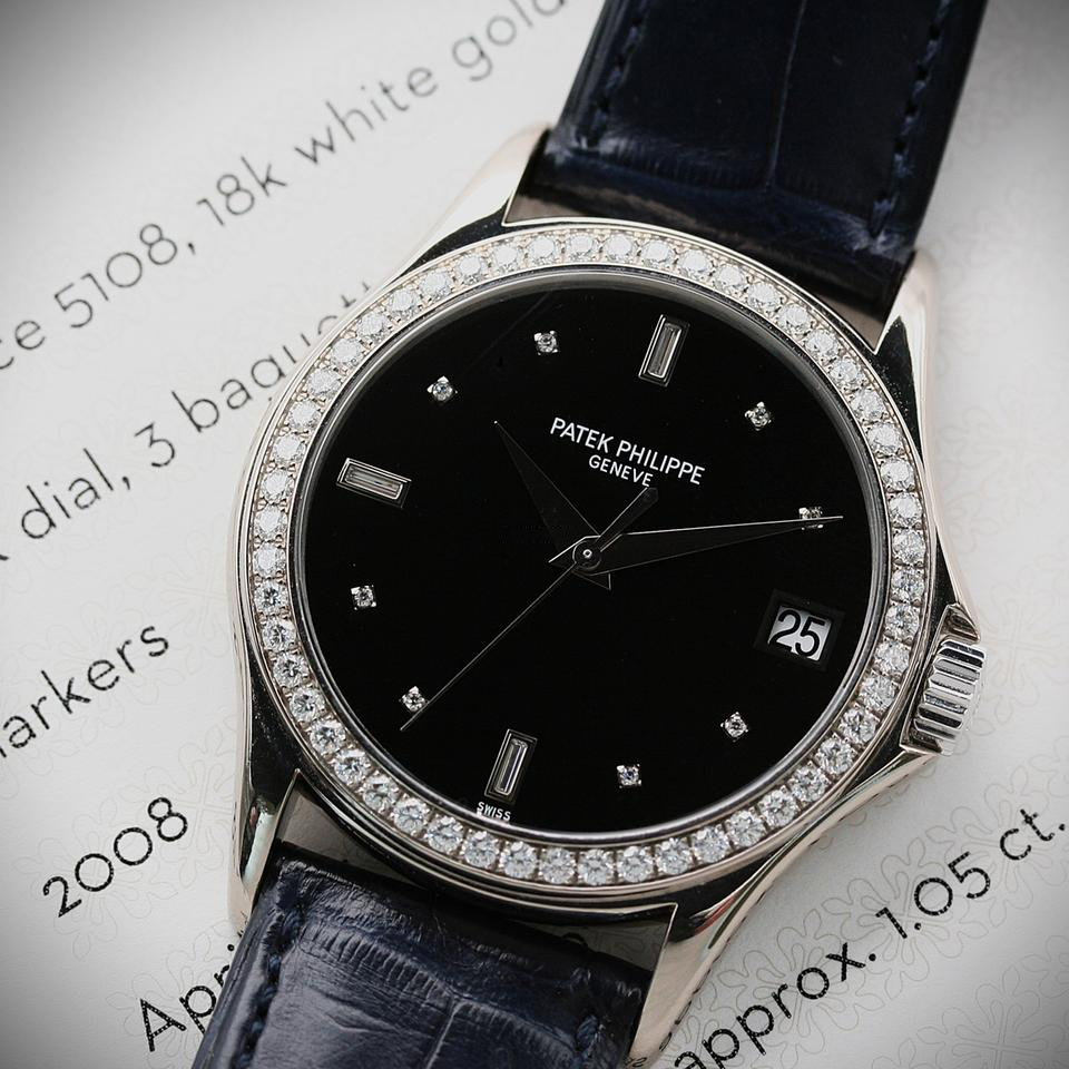 [ÆÄÅØÇʸ³] Ä®¶óÆ®¶ó¹Ù 5297G-001 18k È­ÀÌÆ®°ñµå ´ÙÀ̾Ƹóµå º£Á© ºí·¢ ´ÙÀ̾ó ¿ÀÅä¸Åƽ ¹«ºê¸ÕÆ® pat0309 Patek Philippe Calatrava SS Best Edition 18k White gold Diamond Bezel Black Dial Automatic Movement