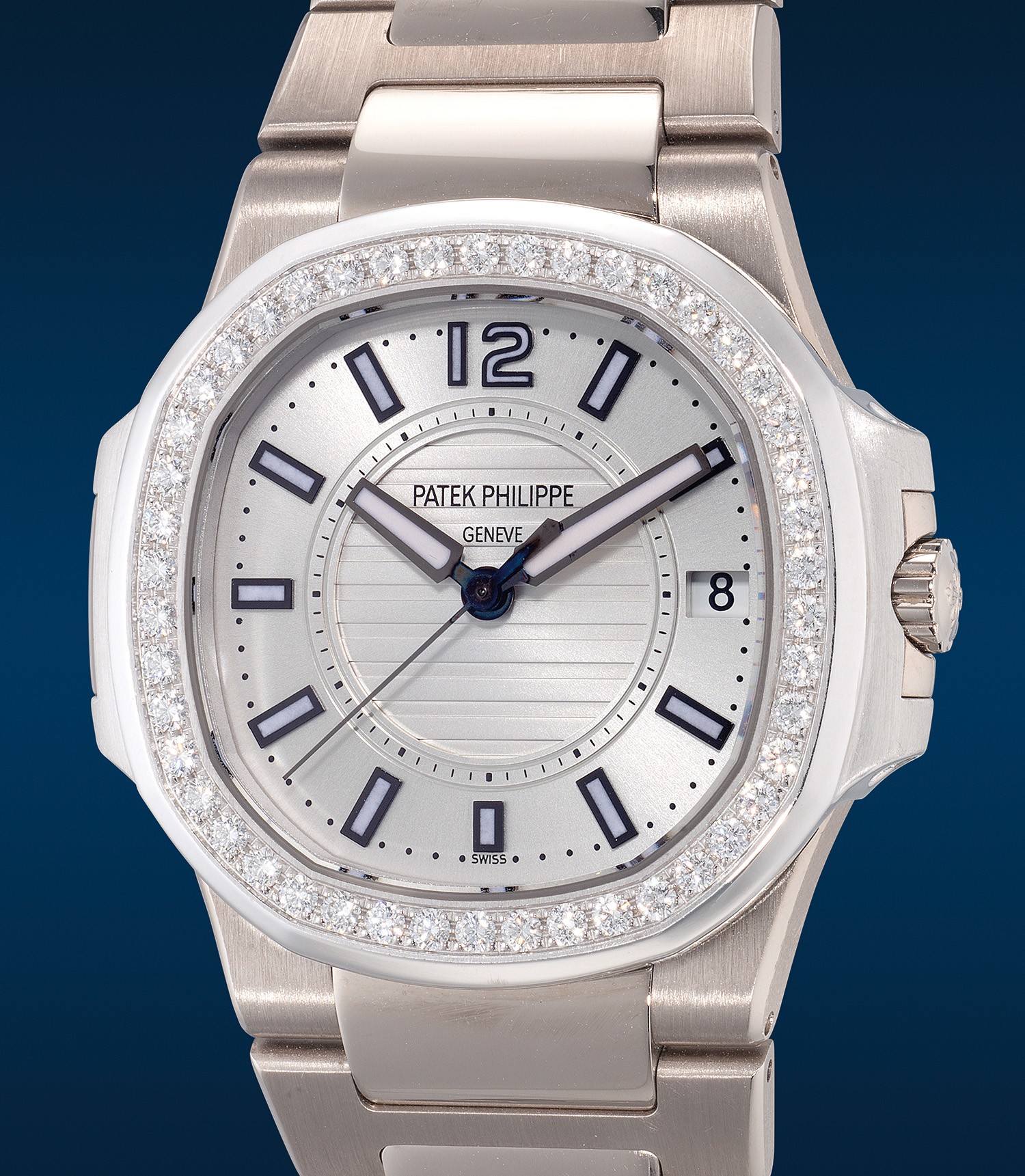 [ÆÄÅØÇʸ³]³ëÆ¿·¯½º 7011/1G-001 ÇÏÀÌ¿£µå ¿©¼º¿ë ÃÖ»ó±ÞÁê¾ó ´ÙÀ̾Ƹóµå º£Á© È­ÀÌÆ® ÅØ½ºÃÄ ´ÙÀ̾ó ºê·¹À̽½¸´ ½ºÀ§½º Á¤Ç° ÄõÃ÷ ¹«ºê¸ÕÆ® pat0336 - Patek Philippe Nautilus Jumbo TOP Grade Quality Ladies Watch Diamond Bezel White Texture Dial Bracelet Swiss ETA Quartz Movement
