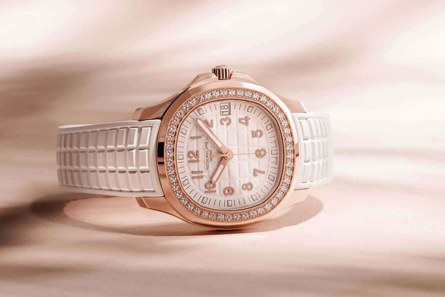 Á¦Ç°¸í [ÆÄÅÜÇʸ³] 2019½ÅÇü ¾ÆÄí¾Æ³Ó ¿©¼º¿ë ÄõÃ÷¹«ºê "À¯´Ï¼½½º" °í±Þ½º·¯¿î 18K ·ÎÁî°ñµå ÄÉÀ̽º ´ÙÀ̾Ƹóµå ¼¼ÆÃ º£ÀÌÁö ¿¥º¸½Ì ±â¿ä½¦ ´ÙÀ̾ó E23-250 S C ÄõÃ÷ ¹«ºê¸ÕÆ® pat0431 - Patek Philippe Aquanaut Unisex 18K RoseGold Case Diamonds Guilloche Embossed Dial on White Rubber Strapl E23-250 S C Quartz Movement
