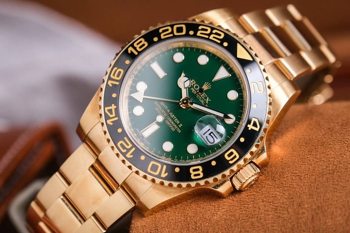 [·Î·º½º] Áö¿¥Æ¼ ¸¶½ºÅÍII BEST ¸ðµ¨ ½ÅÇü¹öÁ¯ °í±Þ½º·¯¿î 18K ¿»·Î¿ì°ñµå ÄÉÀ̽º ¼¼¶ó¹Í º£Á© ½ã´õ½ºÆ® ±×¸° ´ÙÀ̾ó ¿ÀÀ̽ºÅÍ ºê·¹À̽½¸´ ¿ÀÅä¸Åƽ ¹«ºê¸ÕÆ® rol0763 - Rolex GMT-MasterII Root Beer Oyster, flat three-piece links Ceramics Bezel 18K Yellow Gold Sun Dust Green Dial Oyster Bracelet Automatic Movement