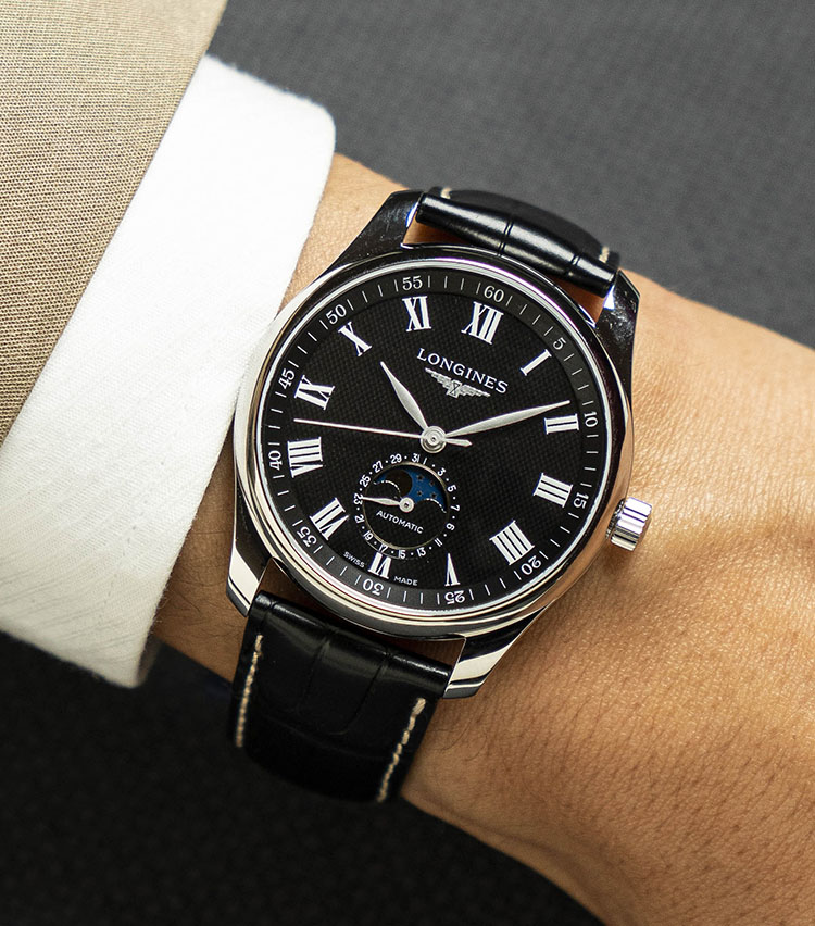 Á¦Ç°¸í [·ÐÁø] ¸¶½ºÅÍ Ä÷º¼Ç ¹®ÆäÀÌÁî ¿ÀÅä¸Åƽ 40mm ³²¼º¿ë½Ã°è °¡Á×ÁÙ ºí·¢´ÙÀ̾ó lon0192 - Longines Master Collection Moonphase Men's Watch 40mm Black Dial