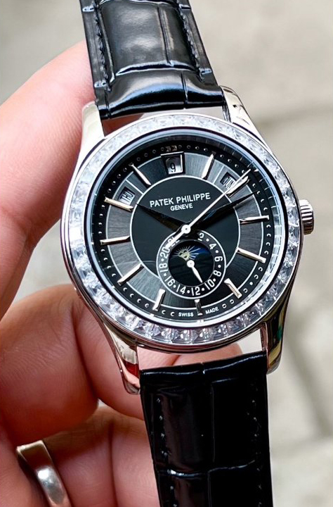 [ÆÄÅØÇʸ³] ÄÄÇø®ÄÉÀÌ¼Ç 5307P-001 "¹Ù°ÔÅ© ÄÆ ¼¼ÆÃ º£Á©" ¿¡´º¾ó ͏°´õ µ¥ÀÌ-µ¥ÀÌÆ® ¹®ÆäÀÌÁî ±×·¹ÀÌ&ºí·¢ ´ÙÀ̾ó Cal.324 S C ¿ÀÅä¸Åƽ ¹«ºê¸ÕÆ® pat0416 - Patek Philippe Complications baguette-cut Diamond Bezel Annual Calendal Day-Date Moonphase Grey&Black Dial Cal.324 S C Automatic Movement