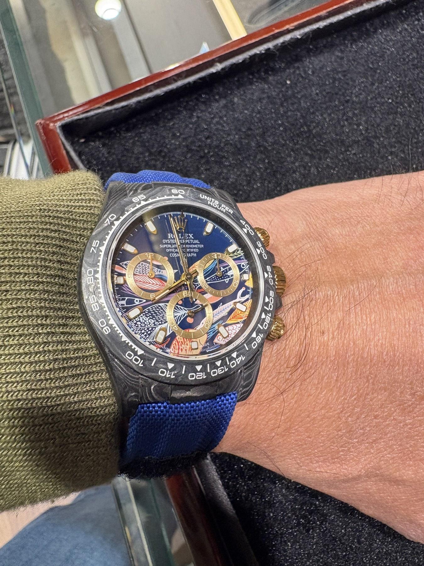 [·Î·º½º] µ¥ÀÌÅ䳪 Æ÷ÁöµåÄ«º» Ä¿½ºÅÒ 40¹Ì¸® Å©·Î³ë±×·¡ÇÁ ³²¼º¿ë½Ã°è ºí·ç´ÙÀ̾ó rol0901 - Rolex Oyster Perpetual Daytona Cosmograph Forged Carbon Custom 40mm Men's Blue Dial