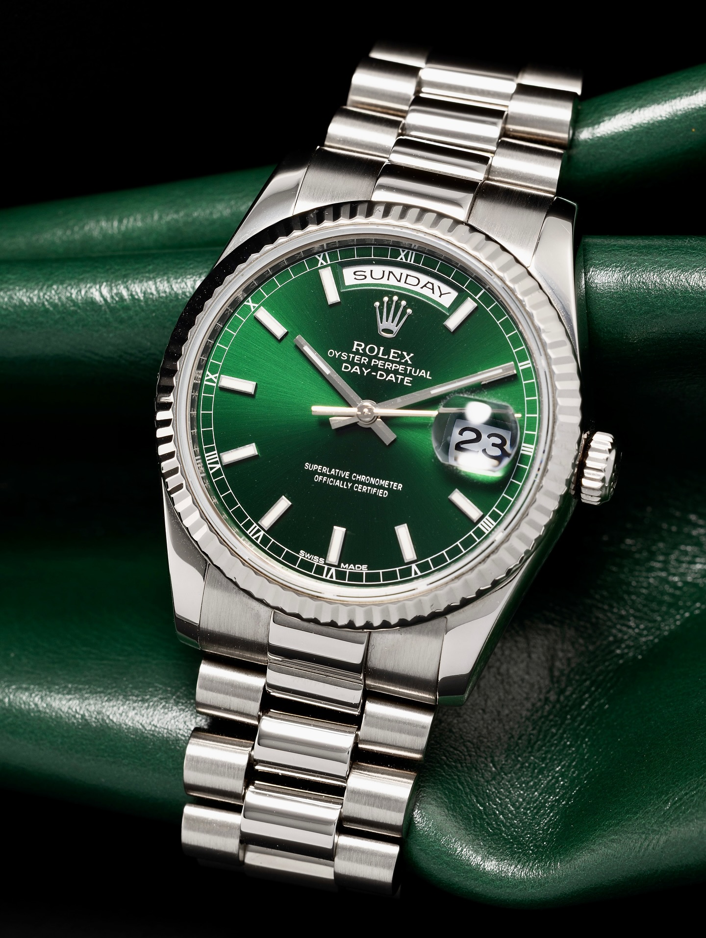 Á¦Ç°¸í [·Î·º½º] Ãß°¡¾÷µ¥ÀÌÆ® µ¥À̵¥ÀÌÆ® 36MM ±×¸° ½ã´õ½ºÆ® ´ÙÀ̾ó UP!! Å©·Î³ë¹ÌÅÍ ÇÃ·çÆ¼µå º£Á© ¿ÀÅä¸Åƽ ¹«ºê¸ÕÆ® rol0745 - Rolex Oyster Perpetual Day Date Green Sun Dust Dial Dial Chronometer Fluted Bezel Automatic Movement