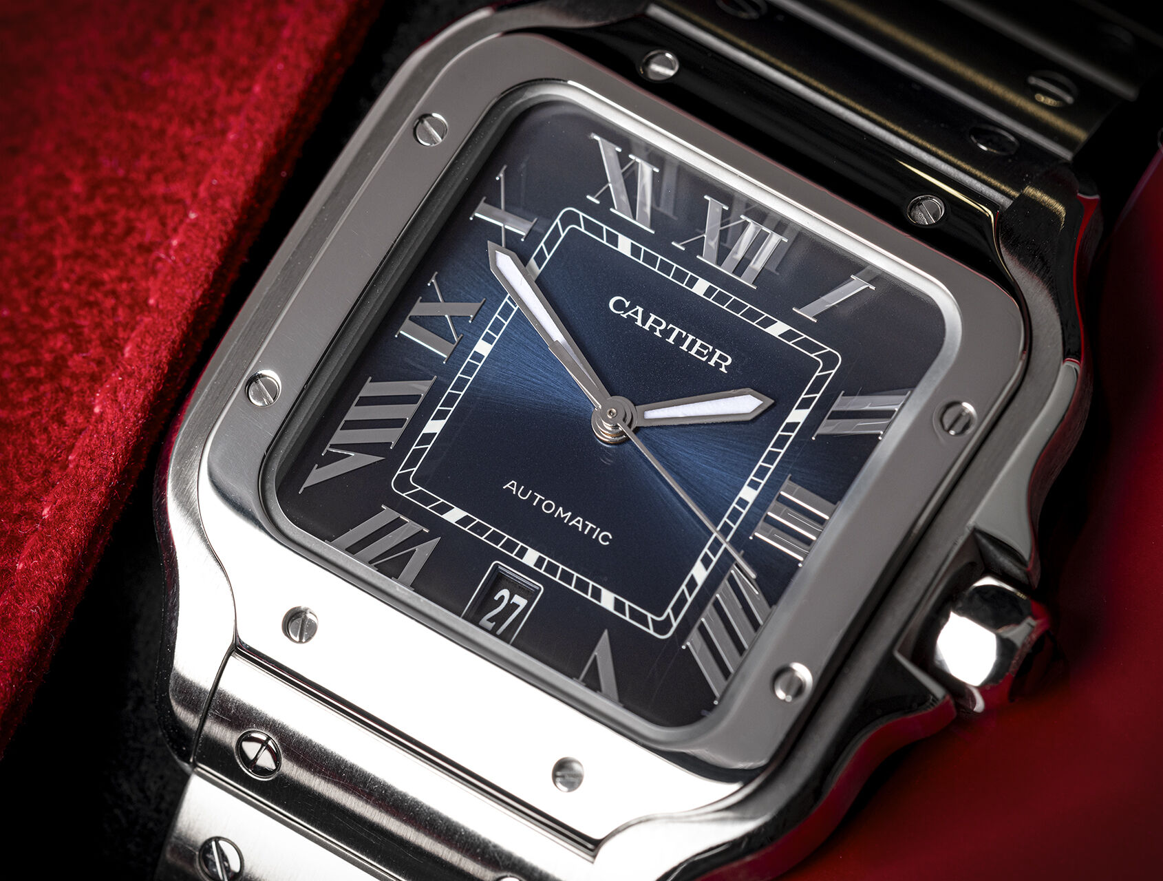 Á¦Ç°¸í [±î¸£¶ì¿¡] »êÅ佺 ¶óÁö ¿ÀÅä¸Åƽ 40mm ³²¼º¿ë½Ã°è ¿ì·¹Åº ºí·ç´ÙÀ̾ó car1275 - Cartier Large Santos De Cartier Automatic 40mm Mens Blue Dial