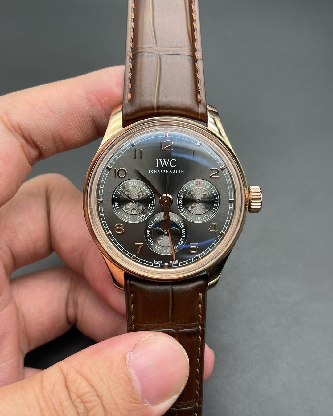 Á¦Ç°¸í [¾ÆÀÌ´õºíÀ¯¾¾] Æ÷¸£Åõ±âÁî ÆÛÆäÃß¾ó ͏°´õ ¹®ÆäÀÌÁî ¿ÀÅä¸Åƽ 42mm Cal.82650 ŸÀÔ 18K ·ÎÁî°ñµå ³²¼º¿ë °¡Á×ÁÙ ±×·¹ÀÌ´ÙÀ̾ó iwc0452 - IWC Portugieser Perpetual.Calendar 42mm Mens Automatic Cal.82650 Type 18K RoseGold Grey Dial