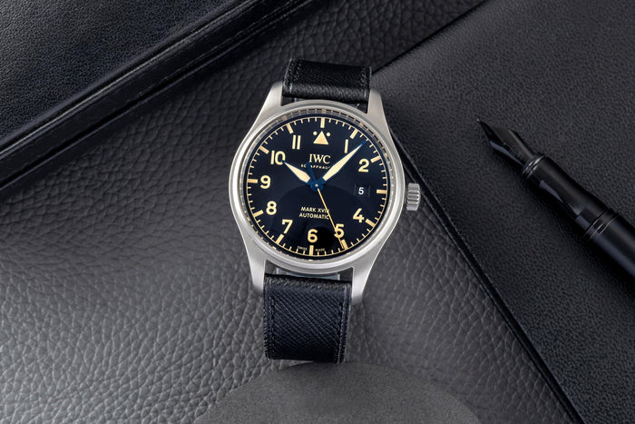 ÆÄÀÏ·µ ¿öÄ¡ ¸¶Å© XVIII Ç츮ƼÁö(Pilot's Watch Mark XVIII Heritage)´Â °£°áÇÑ µðÀÚÀÎÀÇ ¿Ïº®ÇÔÀÌ Æ¯Â¡ÀÔ´Ï´Ù. À¯¸íÇÑ ºò ÆÄÀÏ·µ ¿öÄ¡ 52 T.S.C.¿¡¼­ ¿µ°¨À» ¹ÞÀº ·¹Æ®·Î µðÀÚÀÎÀº ÀÌ °üÃø¿ë ½Ã°è¸¦ ´õ¿í °­·ÄÇÏ°Ô ¸¸µé¾î ÁÝ´Ï´Ù. °­·ÄÇÑ ´ëÁ¶¹Ì¸¦ ÀÌ·ç´Â ´ÙÀ̾ó°ú µð½ºÇ÷¹ÀÌ´Â ÀÌ»óÀûÀΠŬ·¡½Ä ÆÄÀÏ·µ ¿öÄ¡¸¦ Ãæ½ÇÇÏ°Ô ¹Ý¿µÇس»°í ÀÖ½À´Ï´Ù. ³î¶ö ¸¸ÇÑ ÀÏÀÌ ¾Æ´Õ´Ï´Ù. °¢Á¾ µð½ºÇ÷¹ÀÌ´Â ¶ó¿îµå ÇüÅ·Πũ°í º¸±â ÁÁ°Ô ¹èÄ¡µÇ¾î ÀÖ½À´Ï´Ù. ÀÌÈÄ ºñÇà±â Á¶Á¾¼® µðÀÚÀÎÀ¸·Î ¹ßÀüÇÑ ÀÌ ¸ðµ¨¿¡¼­ ±× ¾î´À ÇϳªÀÇ ¶óÀεµ ºÒÇÊ¿äÇÑ °ÍÀº ¾ø½À´Ï´Ù. ¸ðµç µðÀÚÀÎÀº °£°áÇϸ鼭µµ ¶Ù¾î³­ °¡µ¶¼ºÀ» Ãß±¸ÇÏ¸ç ¼³°èµÇ¾ú½À´Ï´Ù. ¶ó¿îµåÇüÀÇ Å« ¾Æ¶óºñ¾Æ ¼ýÀÚ·Î ºÐÀ» Ç¥½ÃÇÑ ´ÙÀ̾óÀº, µÎ °¡Áö Ư¡ÀÌ ÀÖ½À´Ï´Ù. ¼ýÀÚ 12ÀÇ À§Ä¡´Â ¾çÂÊ¿¡ Á¡ÀÌ ÀÖ´Â »ï°¢ÇüÀ» ¹èÄ¡ÇÏ¿© °¡µ¶¼ºÀ» °³¼±ÇÏ¿´°í, ÀÌÀü ¸ðµ¨¿¡¼­ ¼ýÀÚ 3ÀÌ ÀÚ¸®Çß´ø À§Ä¡¿¡´Â ³¯Â¥ âÀ» ¹èÄ¡ÇÏ¿© ºóƼÁö ½Ã°è¿¡¼­ ¿µ°¨À» ¹ÞÀº µðÀÚÀÎÀ» ¸ð´øÇÏ°Ô ÀçÇØ¼®ÇÏ¿´½À´Ï´Ù. ÀÌ ¸ðµ¨Àº »êÅä´ÏÀÇ ½ºÅ¸Àϸ®½ÃÇÑ Ä«ÇÁ½ºÅ² ½ºÆ®·¦À¸·Î ±¸ÀÔÇÏ½Ç ¼ö ÀÖ½À´Ï´Ù.
